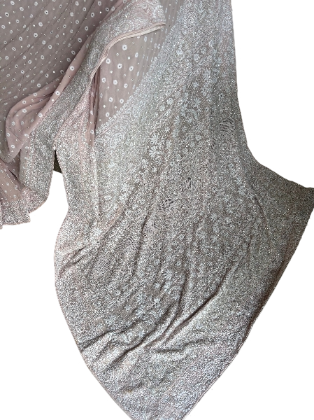 Soft and sophisticated, this dusty pink pure and premium georgette saree is a perfect blend of elegance and intricate artistry. Adorned with shimmering cutdana, sequins, mirrors, and delicate pearls, it offers a luxurious yet graceful sparkle, ideal for both day and evening celebrations. The lightweight georgette fabric drapes effortlessly, enhancing the silhouette with fluid charm. Each embellishment is thoughtfully placed to elevate the saree’s festive appeal without overwhelming its subtle tone. A refined choice for weddings, receptions, and special occasions where understated glamour speaks volumes.